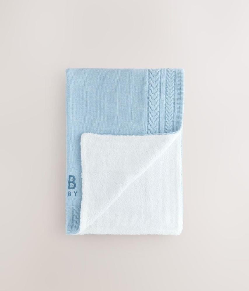 بطانية زرقاء محبوكة بنمط مجدول للأولاد من Baker by Ted Baker + دمية أرنب مصنوعة يدويًا من الصوف